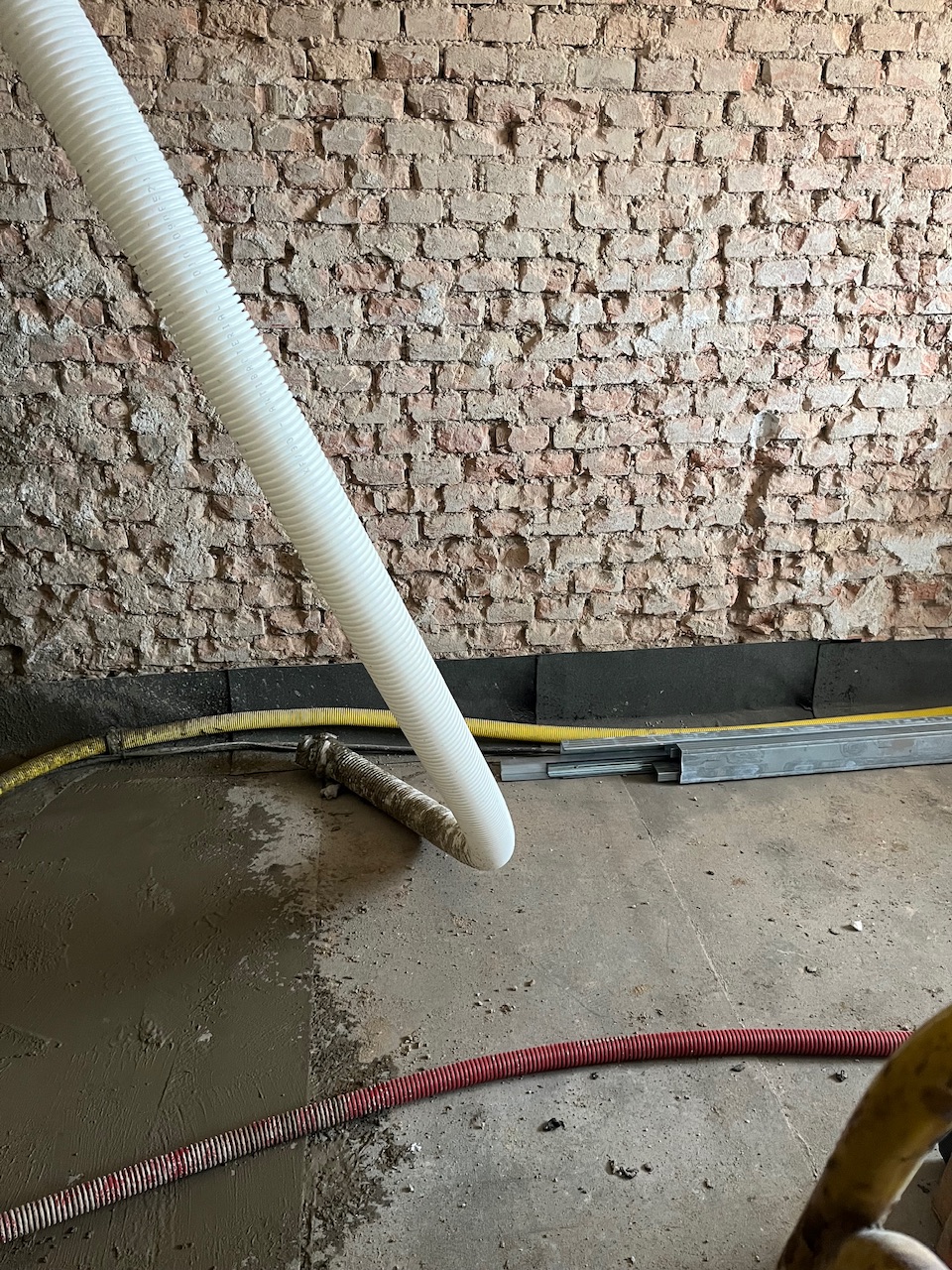 Ochrana skladby podlahy: Těsný hydroizolační límec zajistí, že nová skladba podlahy (tepelná izolace a anhydrit) nebude v přímém kontaktu s vlhkým zdivem pod úrovní injektáže.
