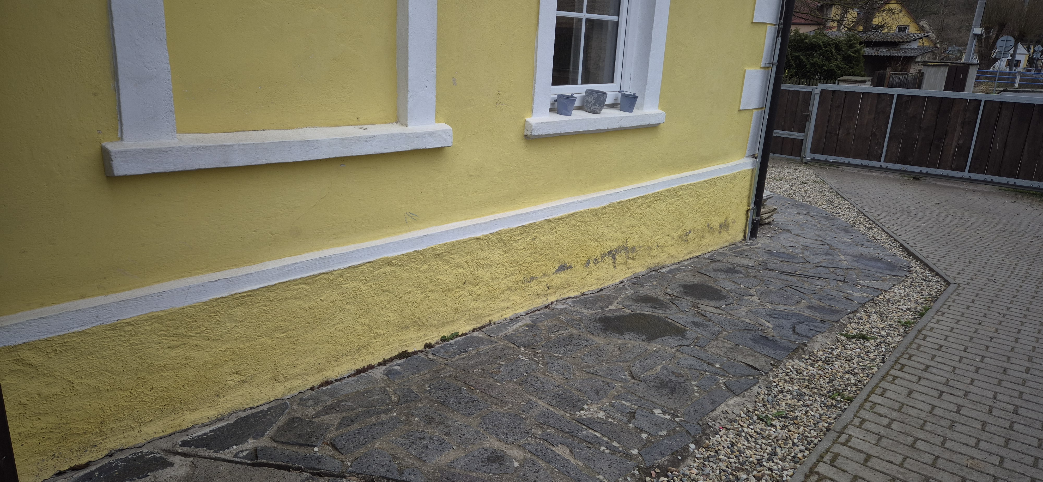 Injektáž chci provést kombinovaně zvenku a zevnitř. vnitřní podlaha je cca ve výšce kde dochází k výkvětům na omítce. Chci vrtat co nejblíže k vnitřní podlaze. Avšak, dle foto 2 jsou v domě asi 2 staré vodorovné hydroizolace. Nad spodní izolací je řada asi pískovcových kamenů.